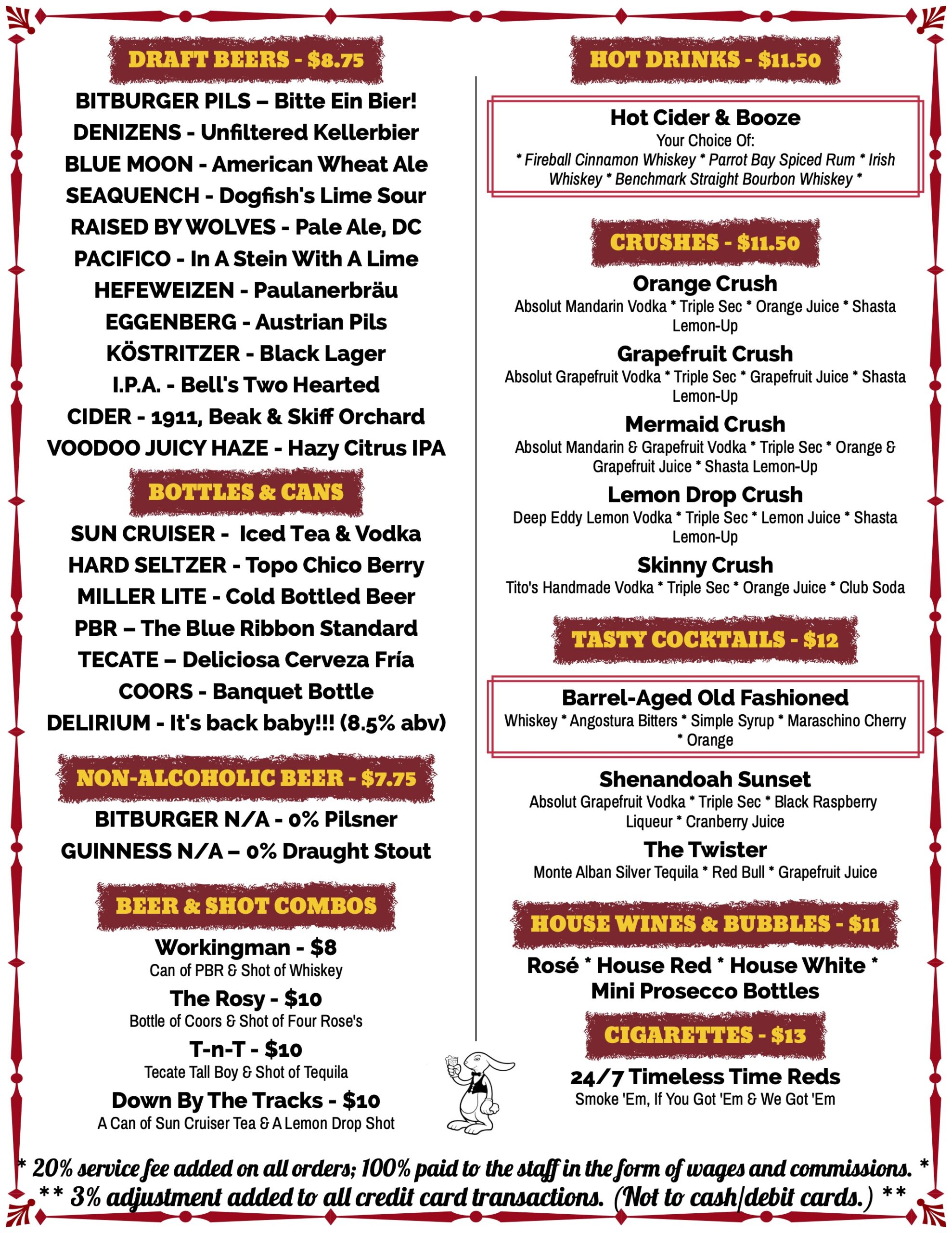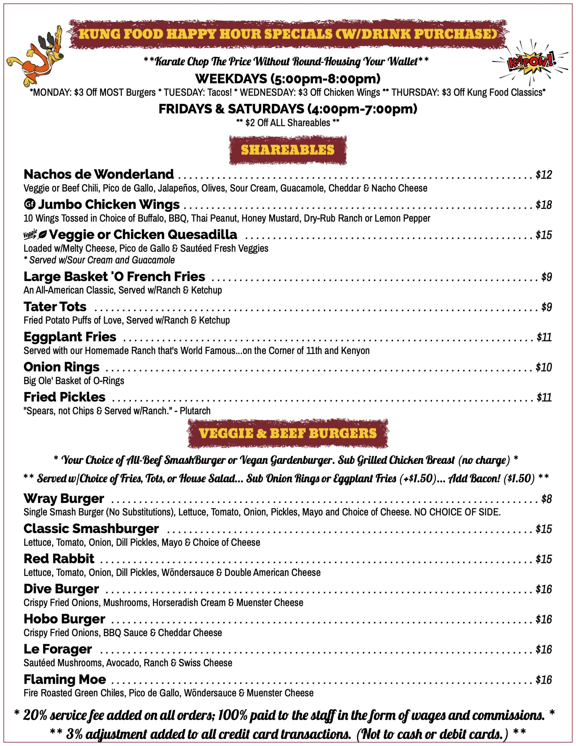 (Monday-Thursday, 5-6:30 & Friday-Sunday, 4-6:30)